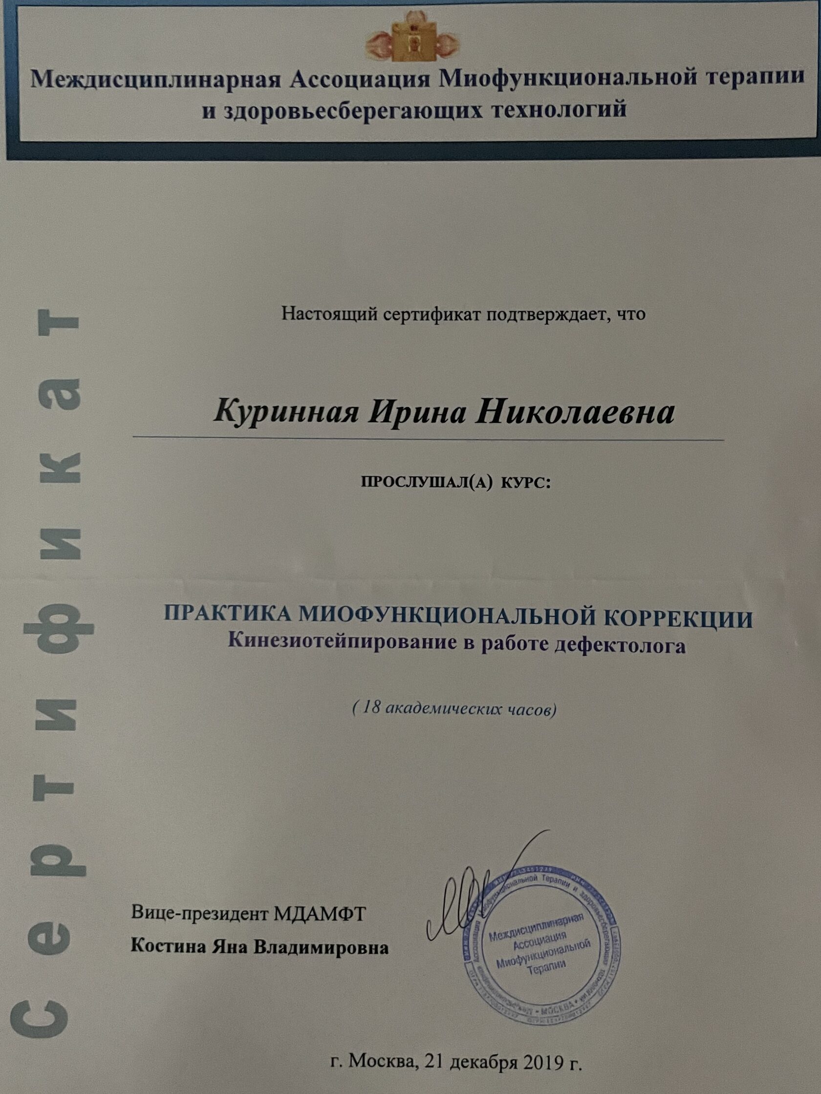 Являюсь действительным членом ассоциации терапевтов