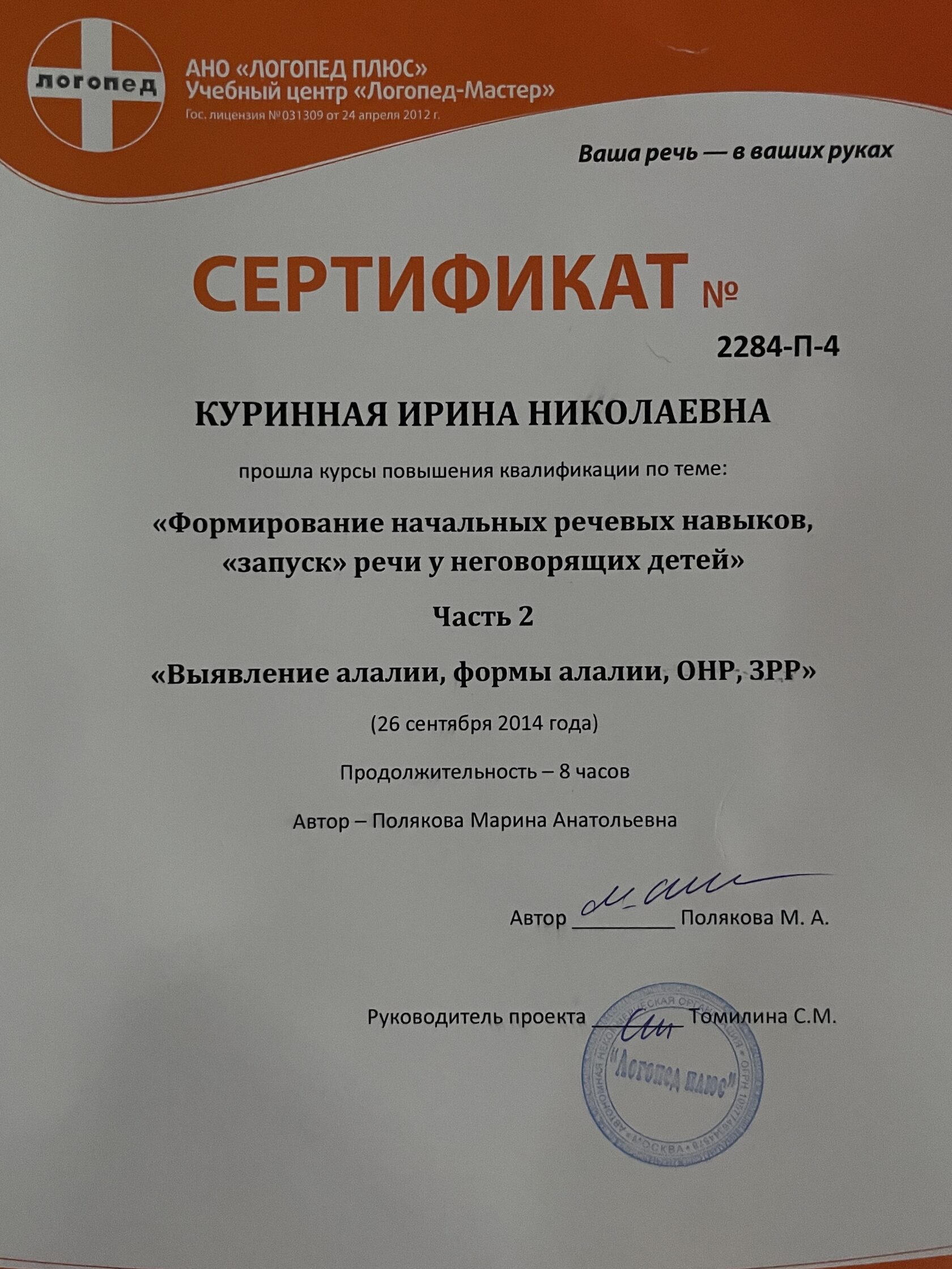 ЛОГОПЕД-ДЕФЕКТОЛОГ, НЕЙРОПСИХОЛОГ